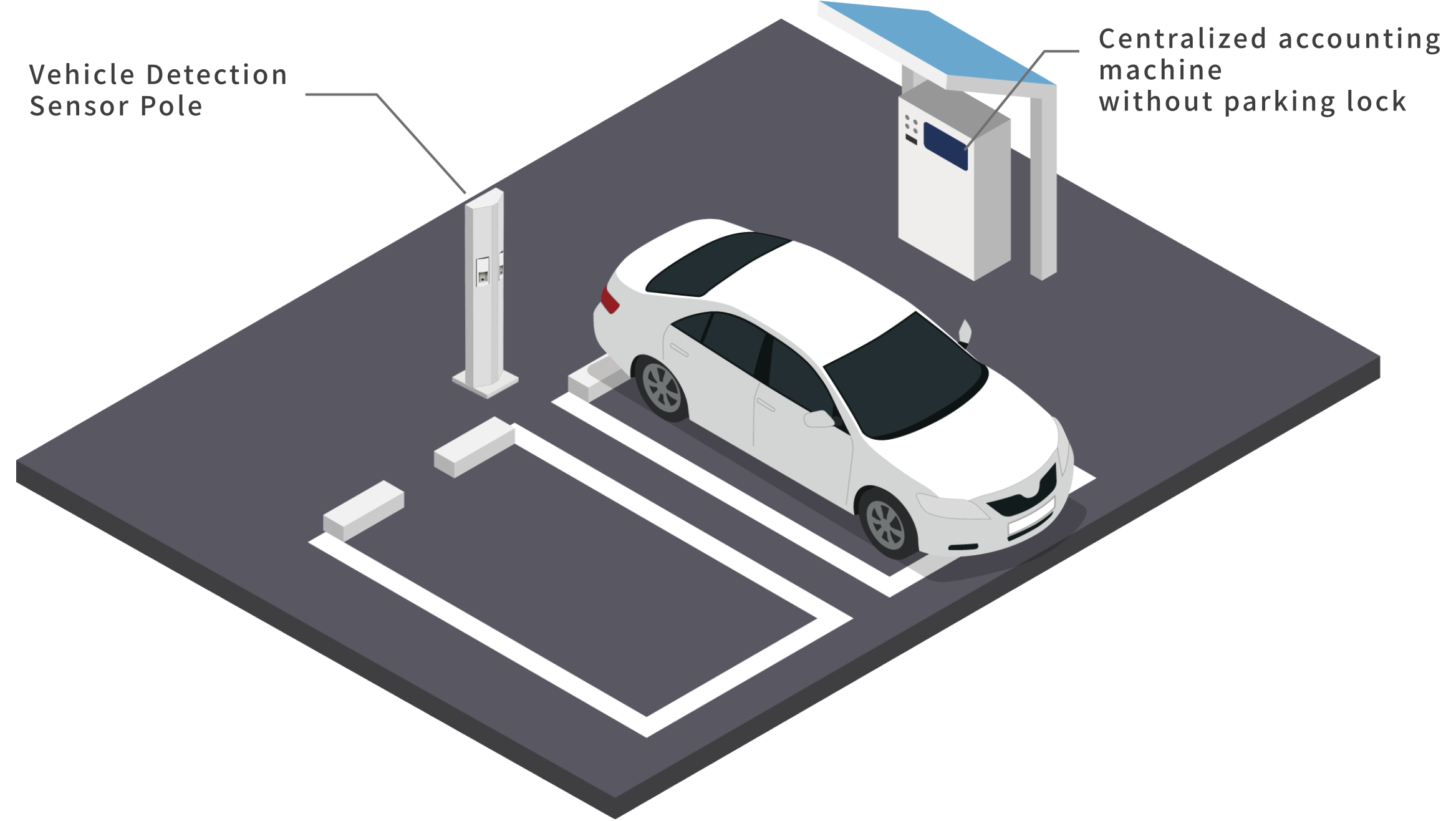 By installing poles with vehicle detection sensors instead of flap plates, the parking lot can be used stress-free for users. Furthermore, since no burial work is required, the simplification of construction makes it possible to operate the parking lot in any location and for any type of vehicle.
