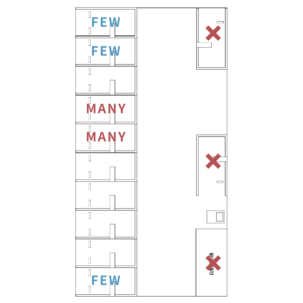 Aiming to design parking spaces that meet the needs of a wide variety of Coin Parking users, we will provide a multi-purpose wide-vehicle room as a standard feature that can accommodate people with disabilities, people who have difficulty loading and unloading luggage, people who have difficulty parking, etc.