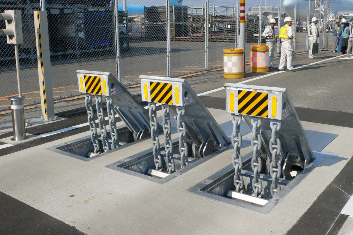 This is a pneumatic vehicle intrusion prevention device. It can withstand a 50 km/h collision with a vehicle weighing 2 tons, and can be used for vehicle entry/exit control of important facilities, anti-terrorism measures, and other applications.