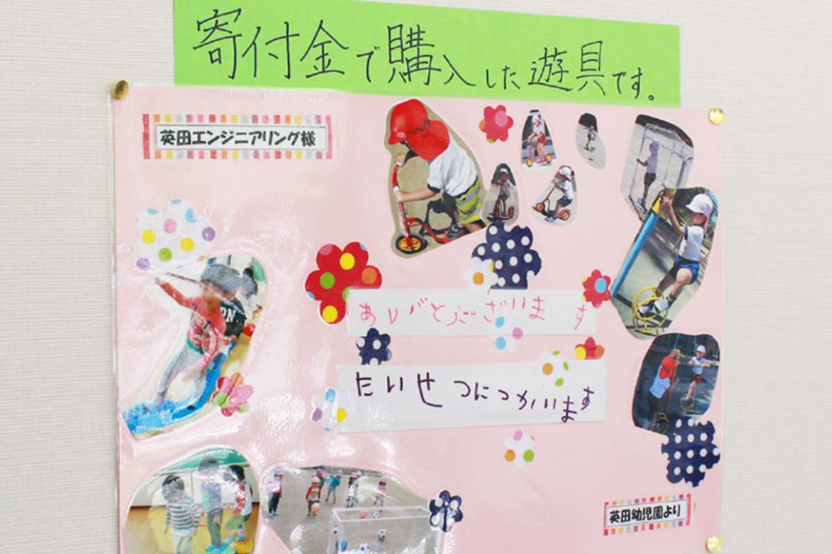 We aim to improve the educational environment for children. We believe that providing children with opportunities to learn will lead to the realization of a sustainable society. Therefore, through donations to schools, we are working to improve the facilities and teaching materials of educational institutions.
